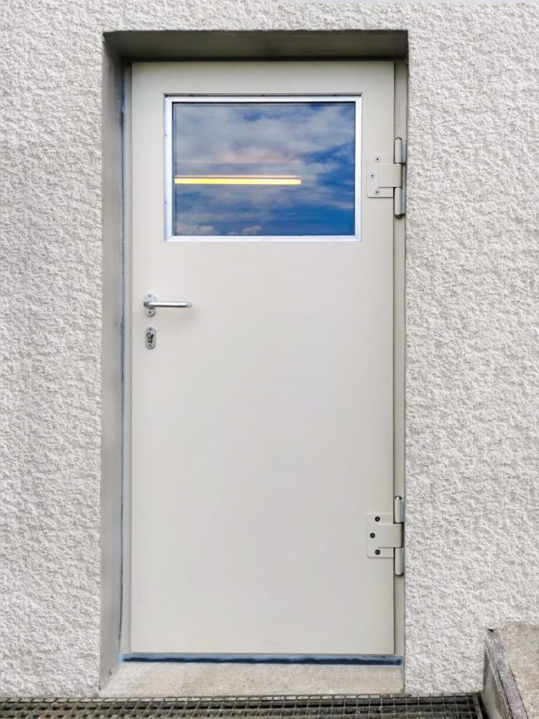 Das Chiemgauer Hochwasserschutz-System eignet sich unter anderem besonders für Haustüren, Kellerfenster und Tankraumluken. Das System kann auf oder in die Leibung montiert werden.